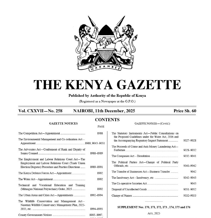 Kenya Gazette Vol. CXXVII-No. 258 {December 2025}