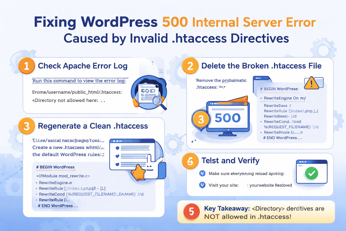 Resolving WordPress 500 Internal Server Error Caused by Invalid .htaccess Directives