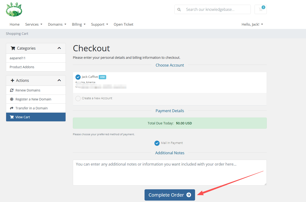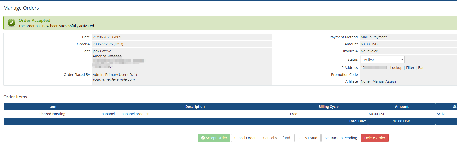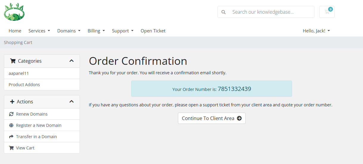 WHMCS Order Confirmation