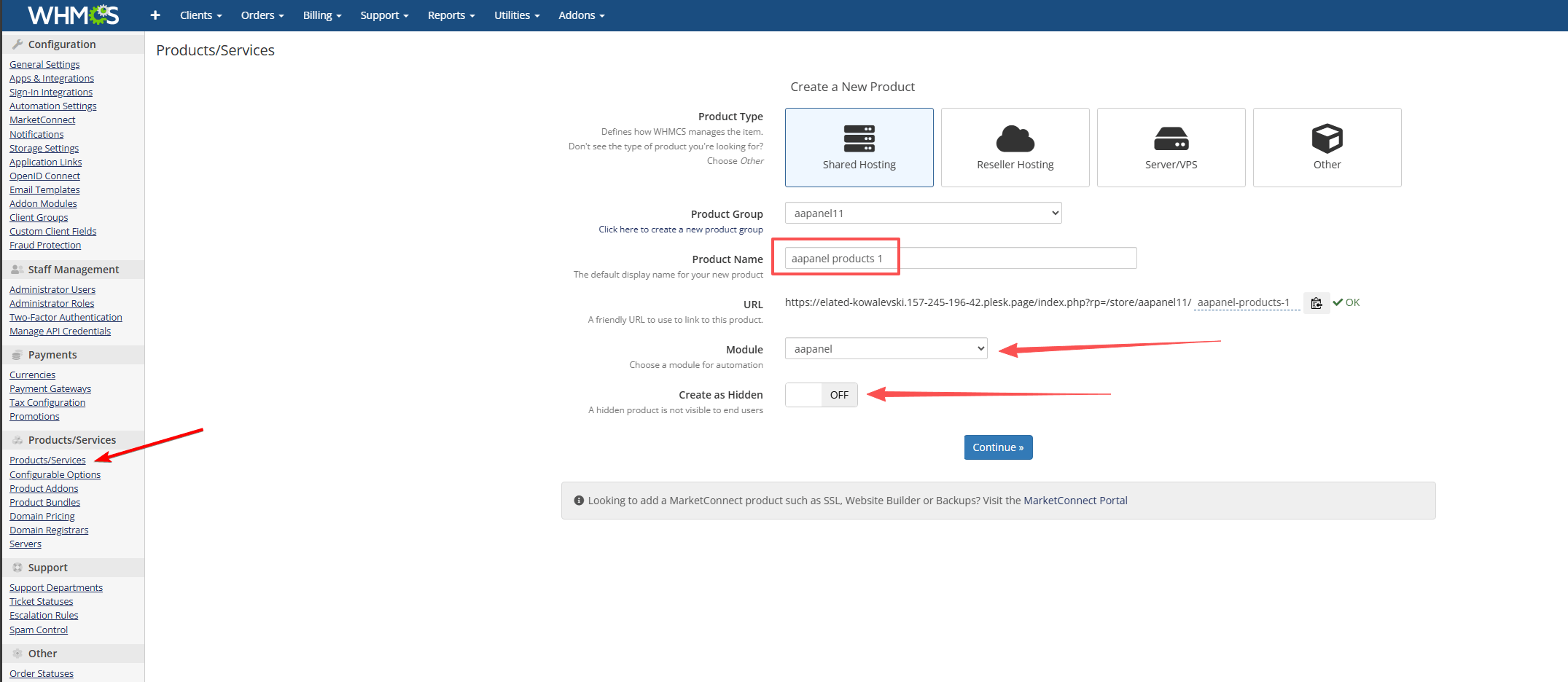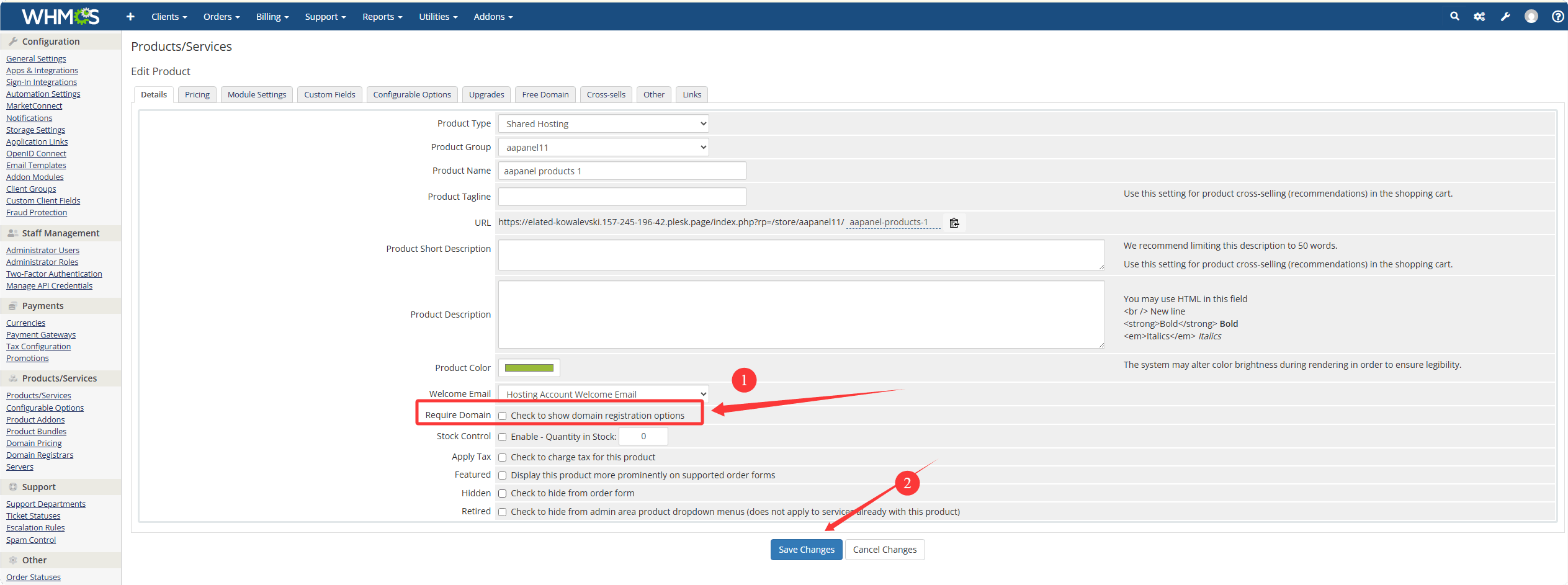 Add Product in WHMCS