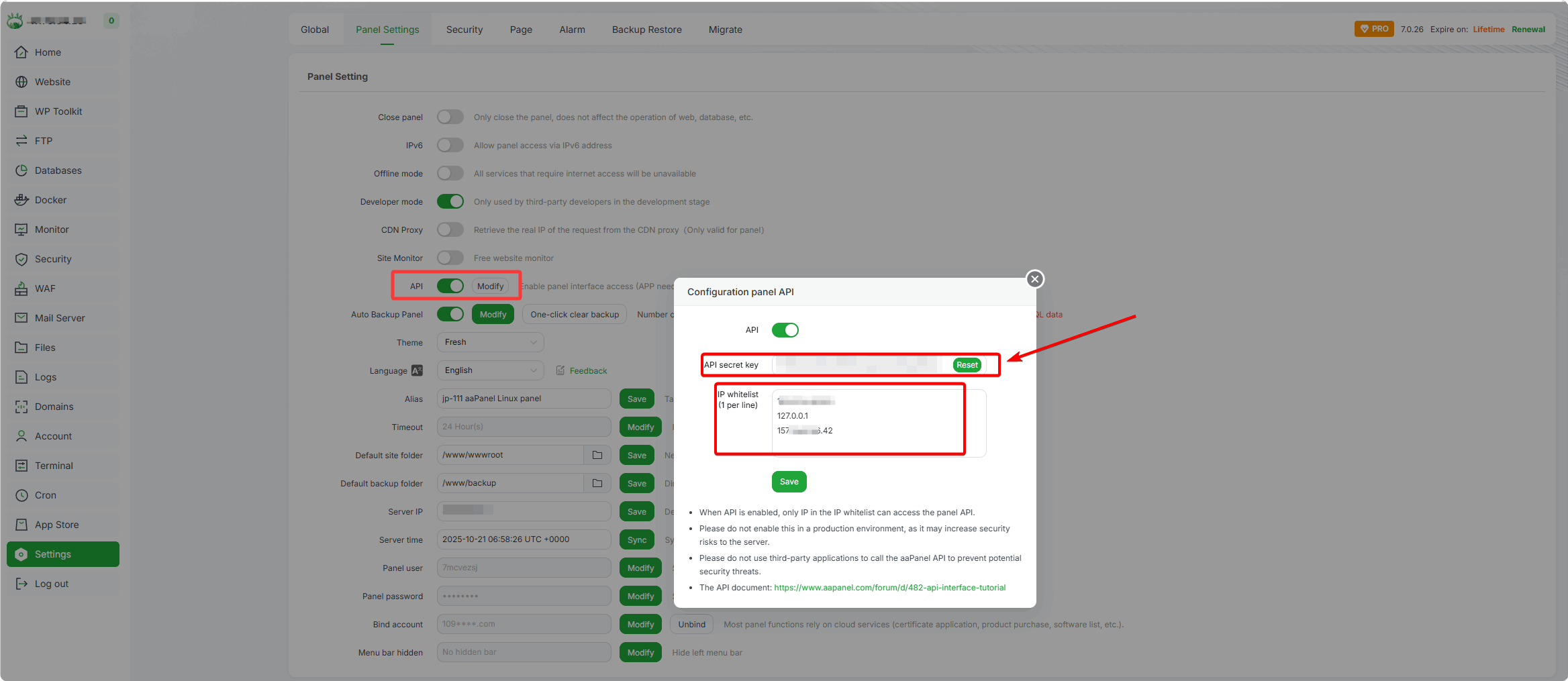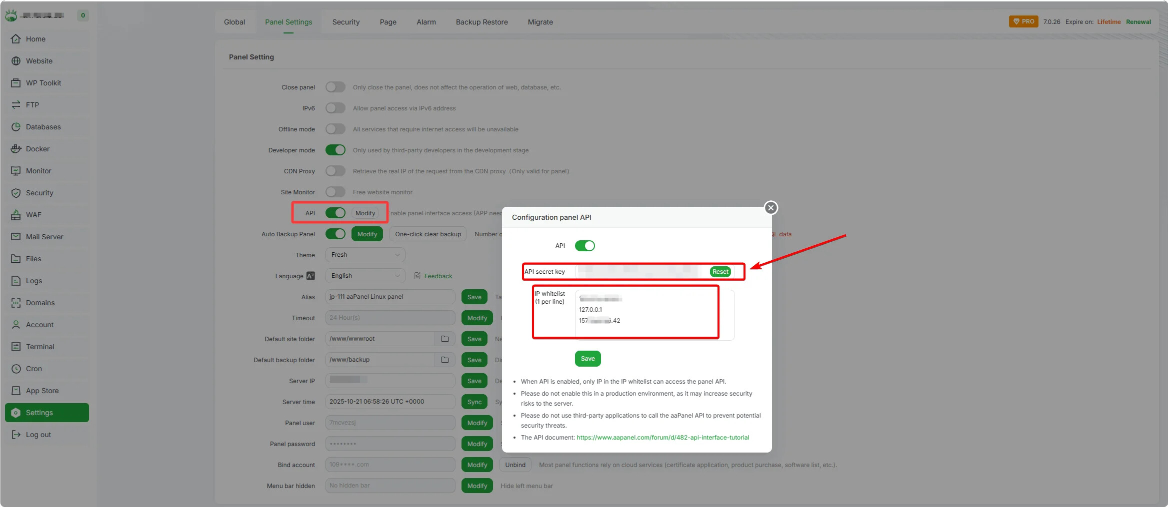 Enable aaPanel API