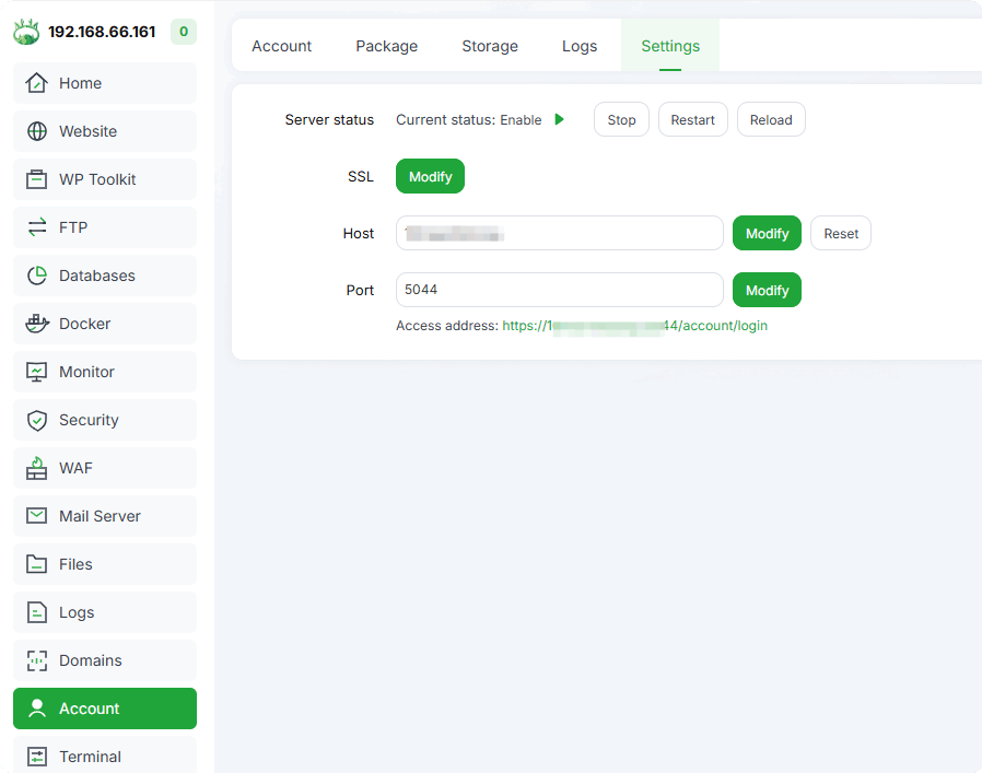 - Hostname or IP Address: IP address of your aaPanel server