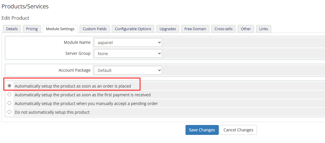 - Download service pack: https://www.aapanel.com/download/aapanel_whmcs.zip