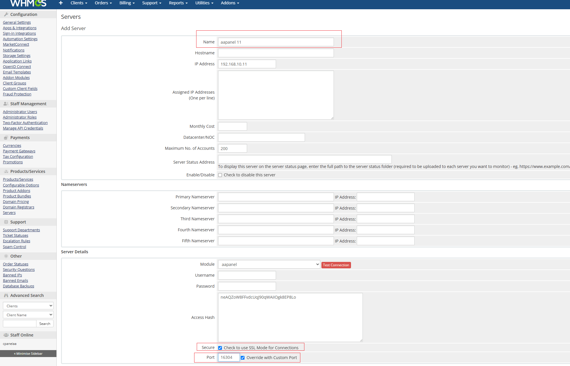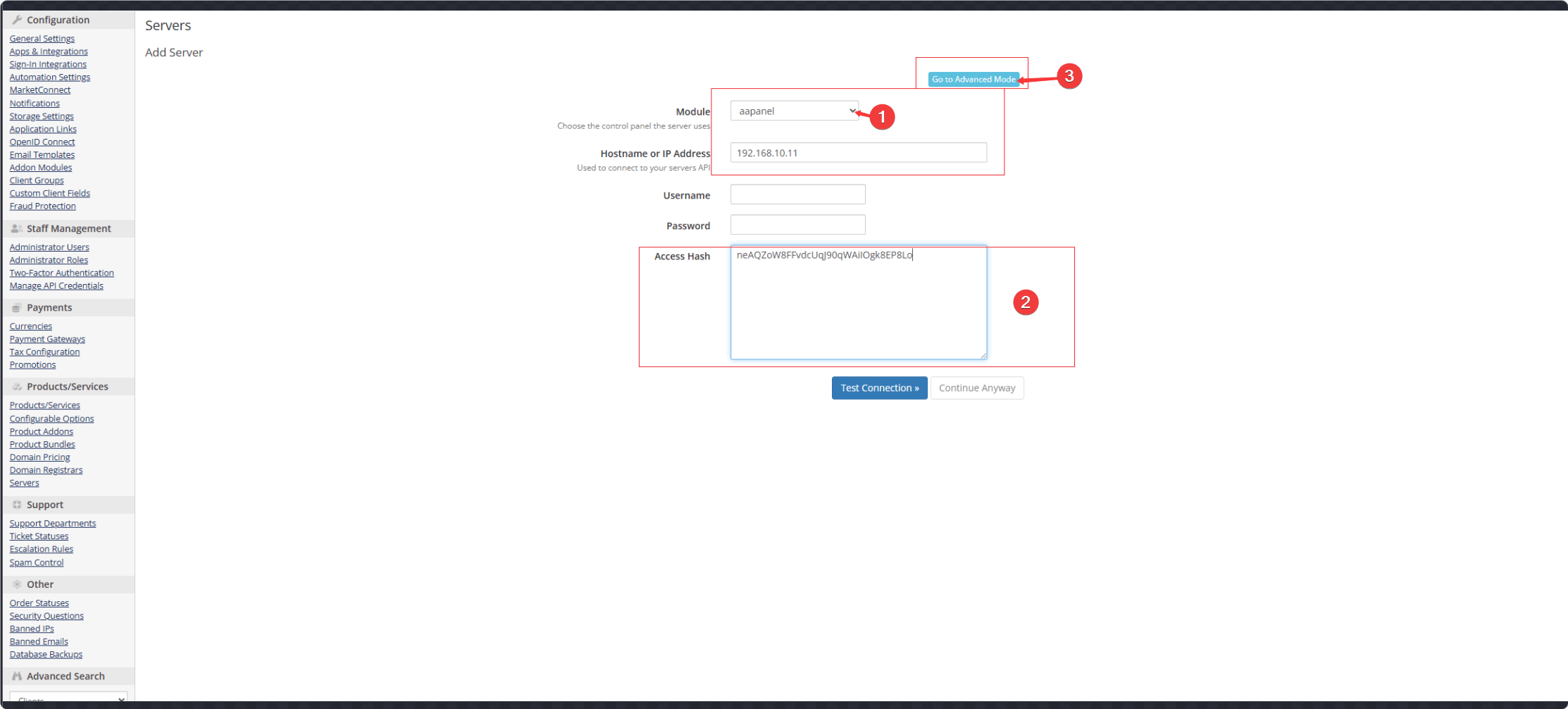 API secret keyof aaPanelGo to Advanced Mode - Override with Custom Port: