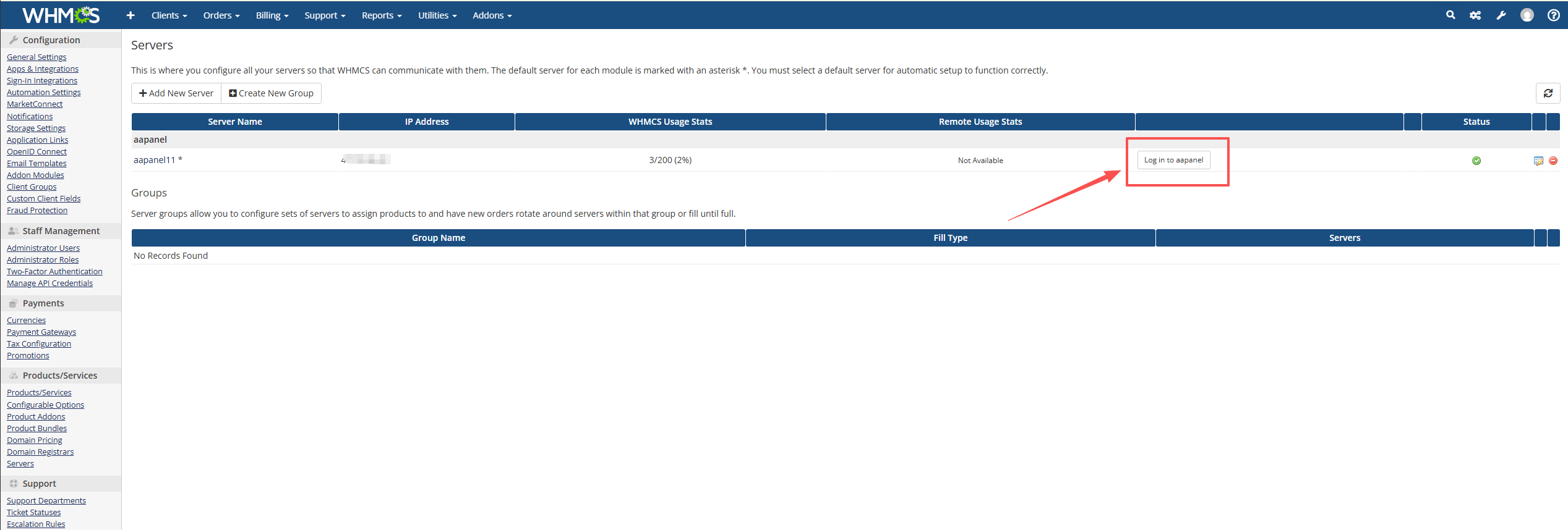 - Add the IP address of the server where the WHMCS service is located to the IP whitelist