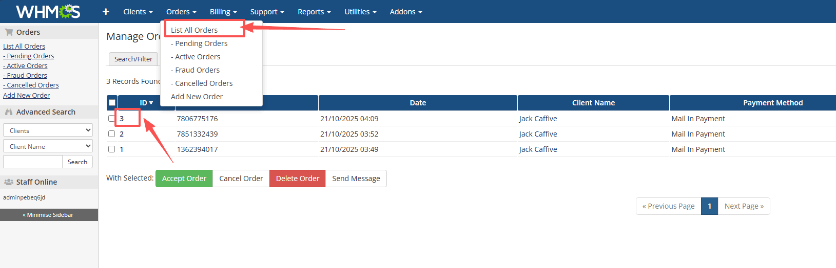 Order → List All Orders